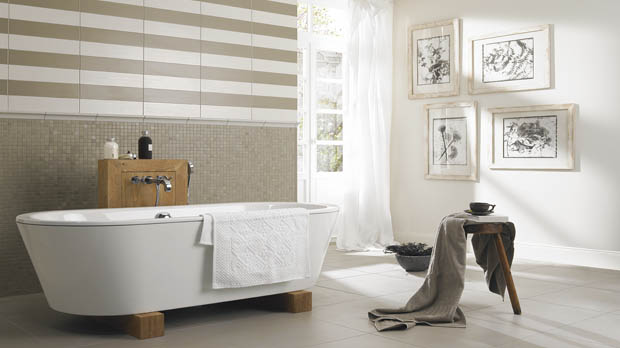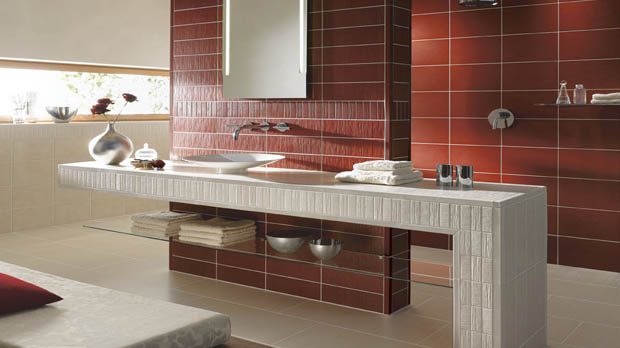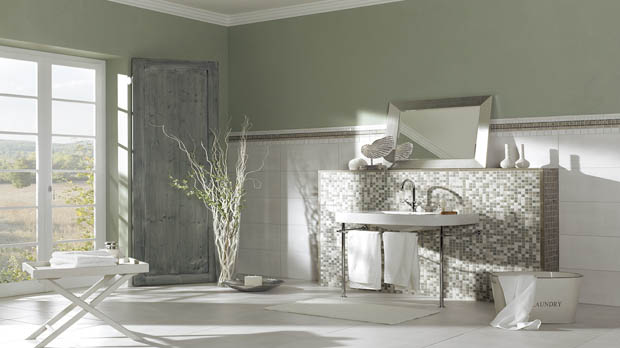 Eine weitere Änderung in den letzten Jahren ist der Einsatz der klassischen Bordüre als eyecatcher an Wänden im Badezimmer. Sie weicht immer mehr zurück. Stattdessen wird immer häufiger Mosaik in den Größen 2,5x2,5 oder 5x5cm sowie 3x6cm um gewollte Stellen z B. Vorwände, Objektbereiche im Badezimmer zu betonen. Weitere immer häufiger vorkommende, edel wirkende Fliesenbeläge sind rustikale Kunststeine in 3 D Mauerwerk Optik Glasfliesen und epoxydharz gebundene Kunststeine.